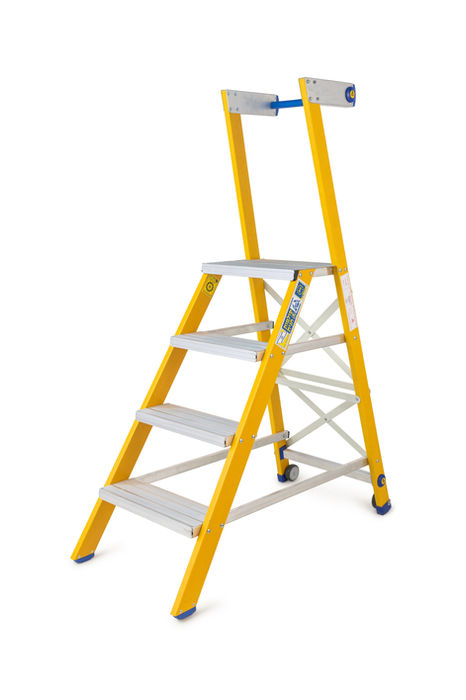 סולם מדרגות קבוע מפיברגלס עם ידית וגלגלים